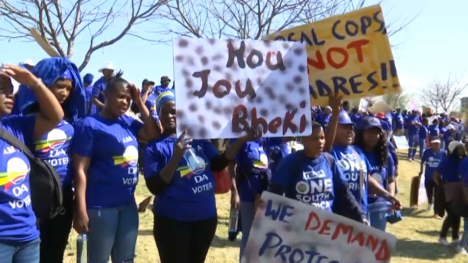 Die party se veldtog om van die minister ontslae te raak, is Dinsdag voortgesit toe DA-lede na Cele se kantoor in Pretoria opgeruk het.