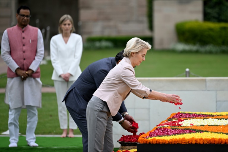 Von der Leyen began her trip by paying her respects to the revered Indian independence hero Mahatma Gandhi at New Delhi's Raj Ghat memorial before meeting with the foreign minister Subrahmanyam Jaishankar.