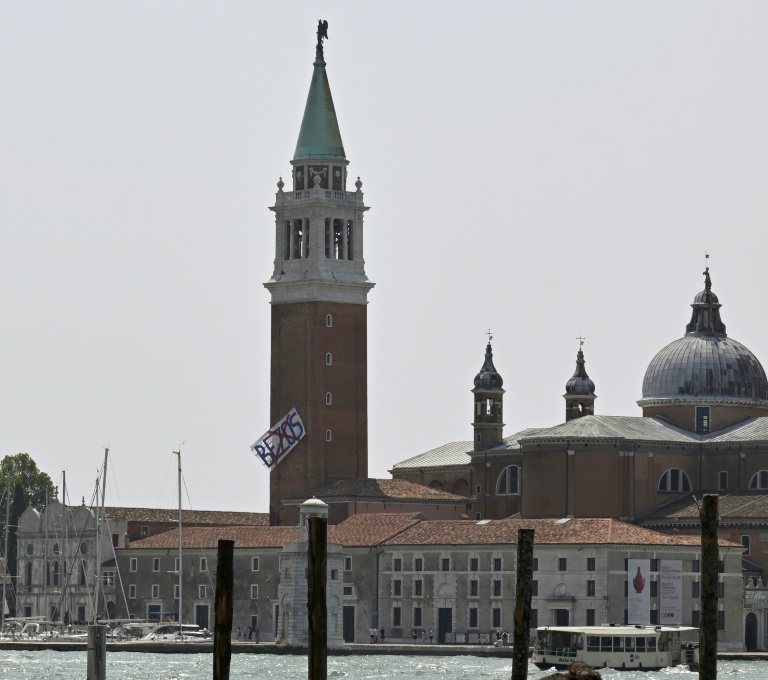 Not everyone is feeling the love though, with some residents hanging a huge banner with an X over Bezos's name on a belltower overlooking the Venice lagoon before the sign was removed on Thursday.