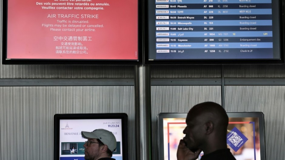 At Paris airports, passengers stared at departure boards loaded with cancellations to assess their options. Some travellers appeared distraught.