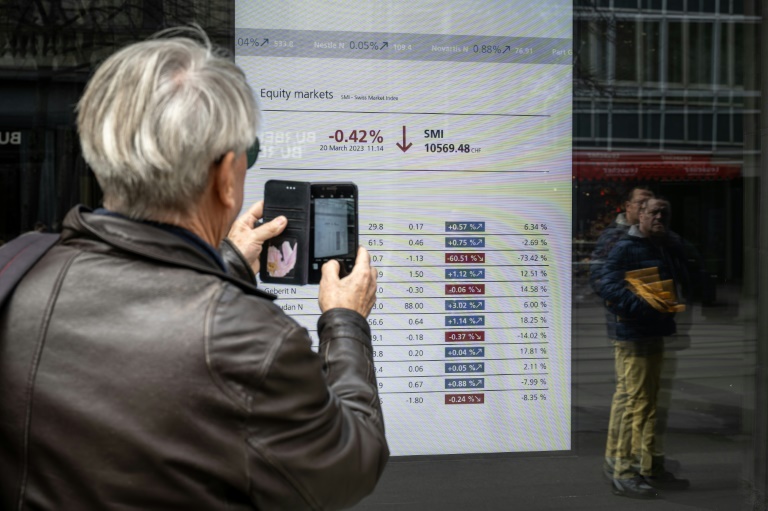 Hong Kong plummeted 2.7 percent, with heavyweight HSBC off nearly six percent on worries about its exposure to risky bonds related to Credit Suisse. Standard Chartered also sank.