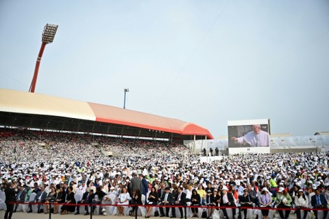 He also attended a service at Our Lady of Arabia Cathedral, the biggest in the Arabian peninsula that seats more than 2,000. Hundreds of migrant workers were among the congregation welcoming him.