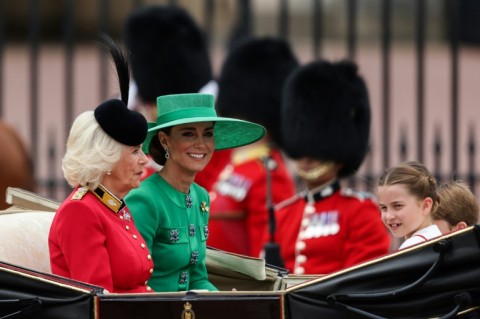 Queen Camilla in a military-inspired red outfit, and William's wife Catherine, the Princess of Wales, who was dressed in green, followed in a carriage.