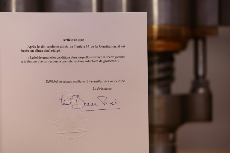 President Emmanuel Macron pledged last year to enshrine abortion -- legal in France since 1975 -- in the constitution after the United States Supreme Court in 2022 overturned the half-century-old right to the procedure, allowing individual American states to ban or curtail it.