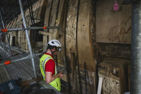 Visitors to the ship currently find it's middle section encased in scaffolding to allow a team of shipwrights to painstakingly replace parts of the "frames" -- described as the vessel's ribs.