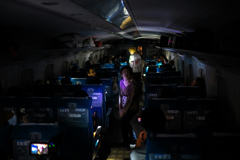 The victims -- actors planted in seats by the organisers -- jerked in agony and then underwent a terrifying transformation before starting a rampage against their fellow passengers.