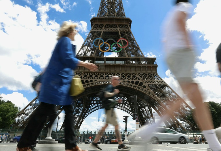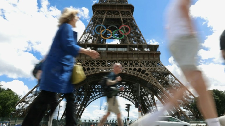 A giant Olympics logo was erected on the tower before the July 28-August 11 Olympics and it became a popular backdrop for selfies by visitors.