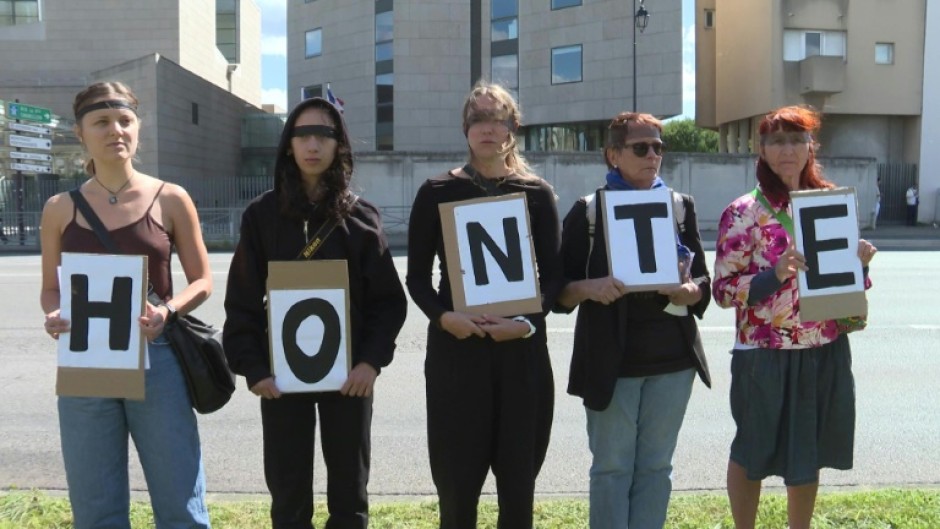 Since then, feminist activists have held up her stylised portrait by Belgian artist Aline Dessine, daubed with the words "Shame is changing sides", to show support at protests.