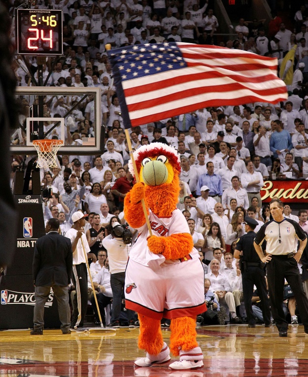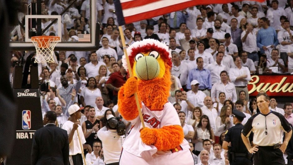 McGregor was roundly booed by the Heat crowd as he promoted his product and was then approached by the Heat mascot 'Burnie' in a costume and boxing gloves.