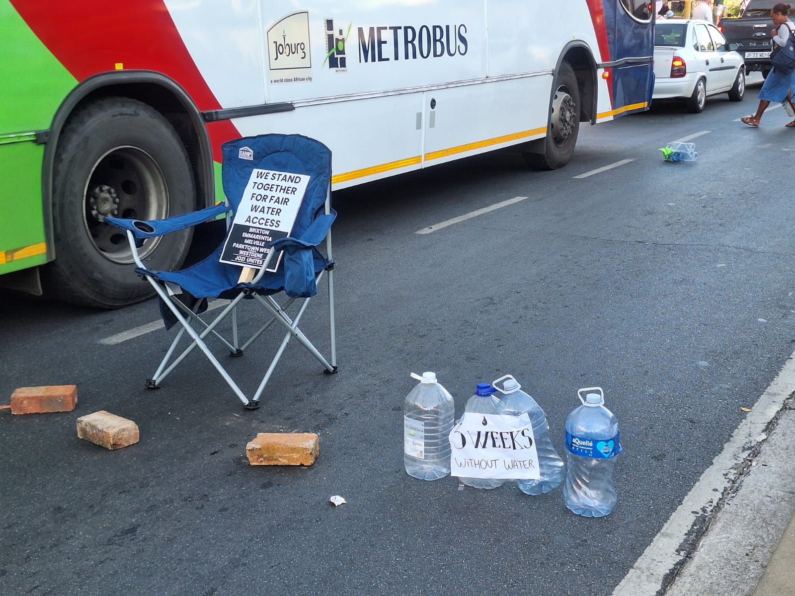 Residents of suburbs, including Melville and Westdene, are protesting over the lack of water supply.