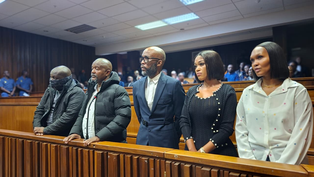 Dressed in a navy Dior suit and chained with leg irons, Matlala joined his co-accused in the dock -- his wife Tsakane, two alleged hitmen, Musa Kekana and Floyd Mabusela, and Nthabiseng Nzama.