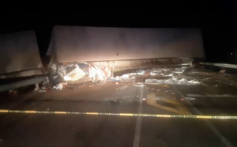 As he was trying to regain control his trailer capsized, crushing the taxi beneath it.