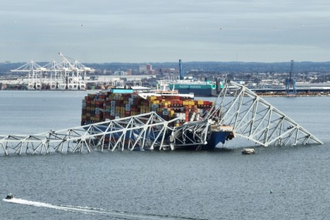 Across the middle of the Patapsco River, steel girders protruded from the water, with mangled metal draped over the deck of the ship.