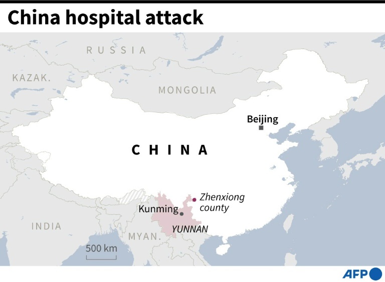 "A knife attack occurred at the Chengnan Hospital in Zhenxiong County, which resulted in two deaths and 21 injuries," a statement on the county's official WeChat account said.