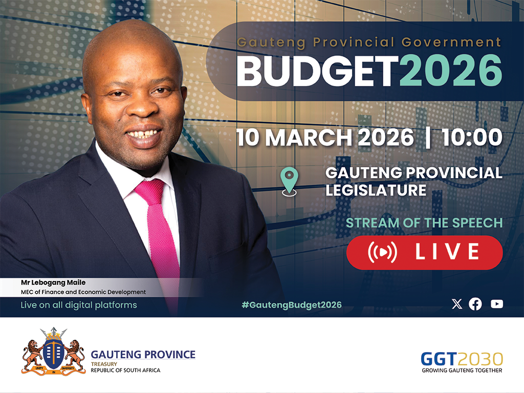 MEC of Finance and Economic Development Lebogang Maile will outline how these and other initiatives will be funded in future when he presents the 2026/27 Provincial Budget to the Gauteng Legislature on Tuesday, the 10th of March at 10am.