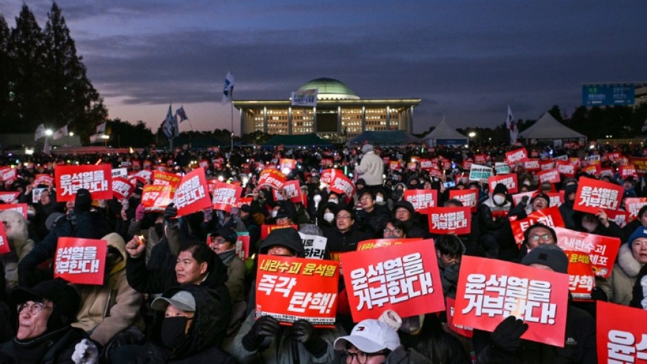 But as MPs formally opened a session to determine Yoon's fate, the vast crowd fell silent, fixated on every move of the lawmakers.