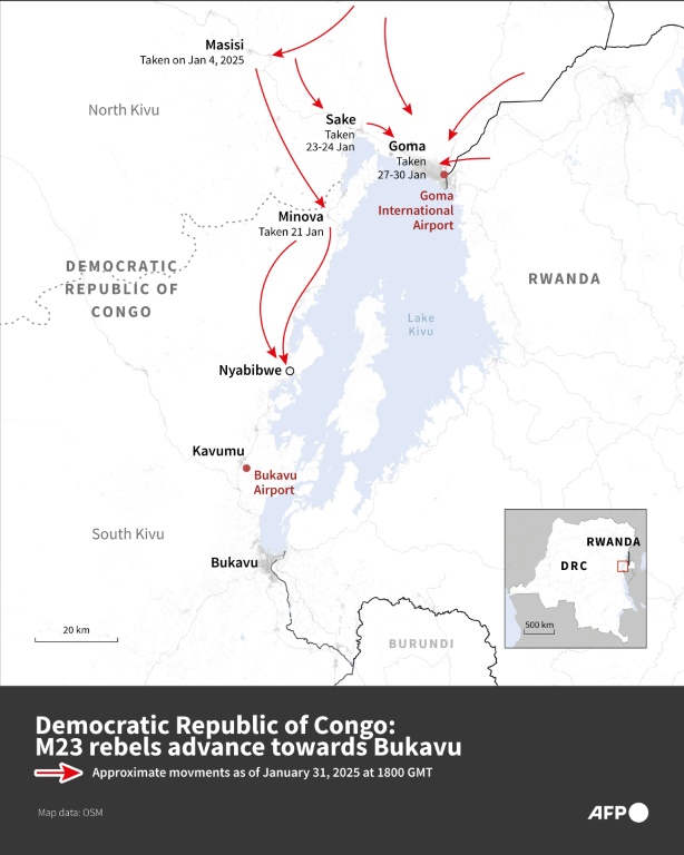 Since M23 and Rwandan troops entered South Kivu province's capital Goma on Sunday, at least 700 people have been killed and another 2,800 wounded in intense clashes, according to the United Nations.