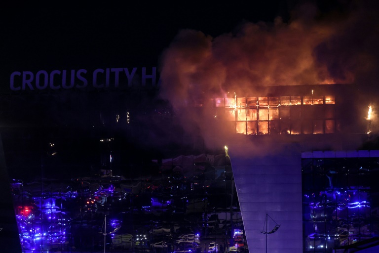 Fire quickly spread through the Crocus City concert hall in Moscow's northern Krasnogorsk suburb, as smoke filled the building and screaming visitors rushed to emergency exits.