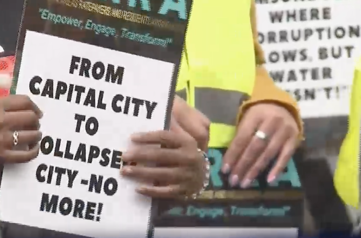 A group of residents demonstrated against power outages, failing water infrastructure and other service shortfalls.