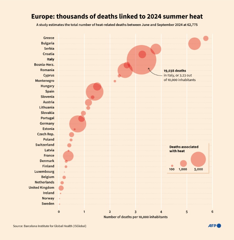 "Europe experienced an exceptionally deadly summer in 2024 with more than 60,000 heat-related deaths, bringing the total burden over the past three summers to more than 181,000," said the study in the journal Nature Medicine.