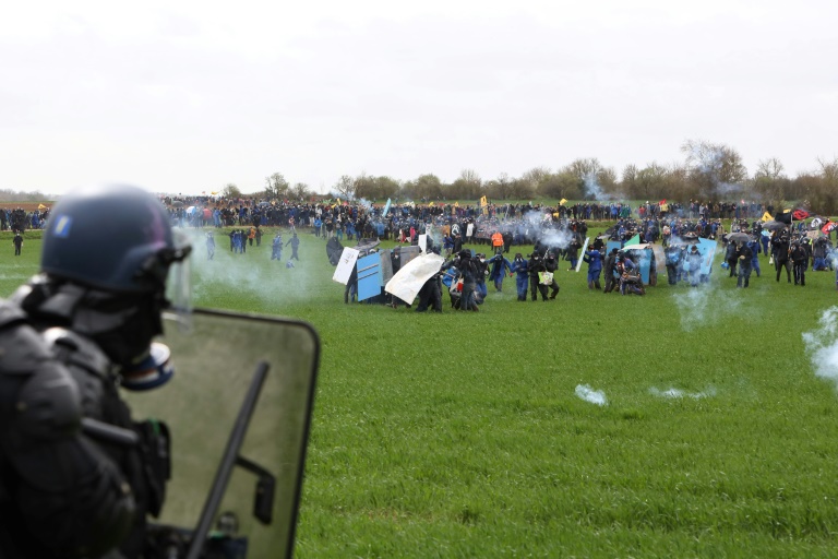 Campaigners in Sainte-Soline were trying to stop the construction of giant water "basins" to irrigate crops, which they say will distort access to water amid drought conditions.