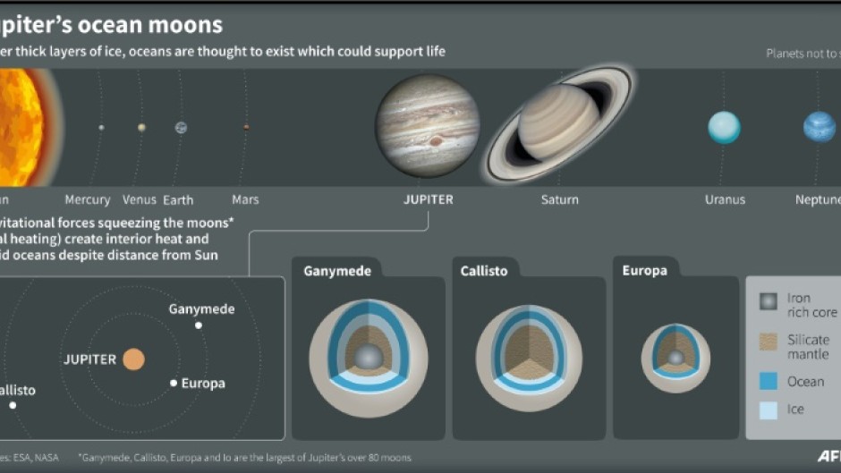 When Juice flies past Europa twice in 2032, it will collect "a wealth of new information," including about surface chemistry, he told AFP.