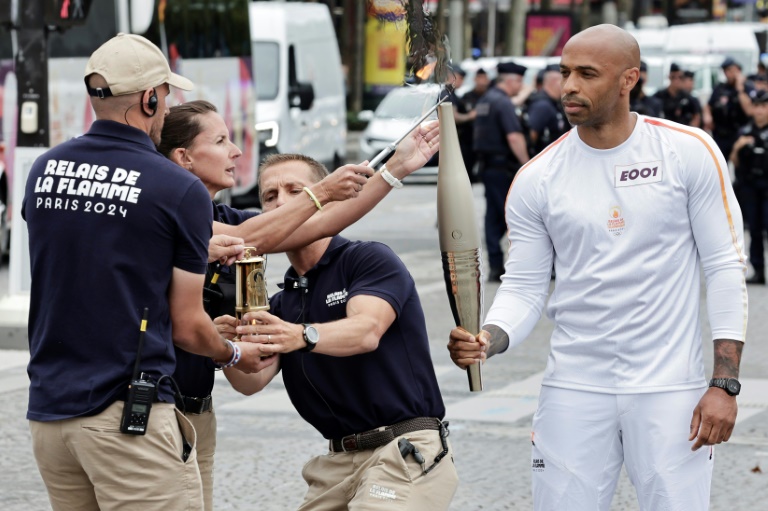 World Cup-winning footballing great Thierry Henry was given the honour of the first leg on the capital's most famous avenue, with the torch then heading for landmarks including the parliament and Notre Dame cathedral