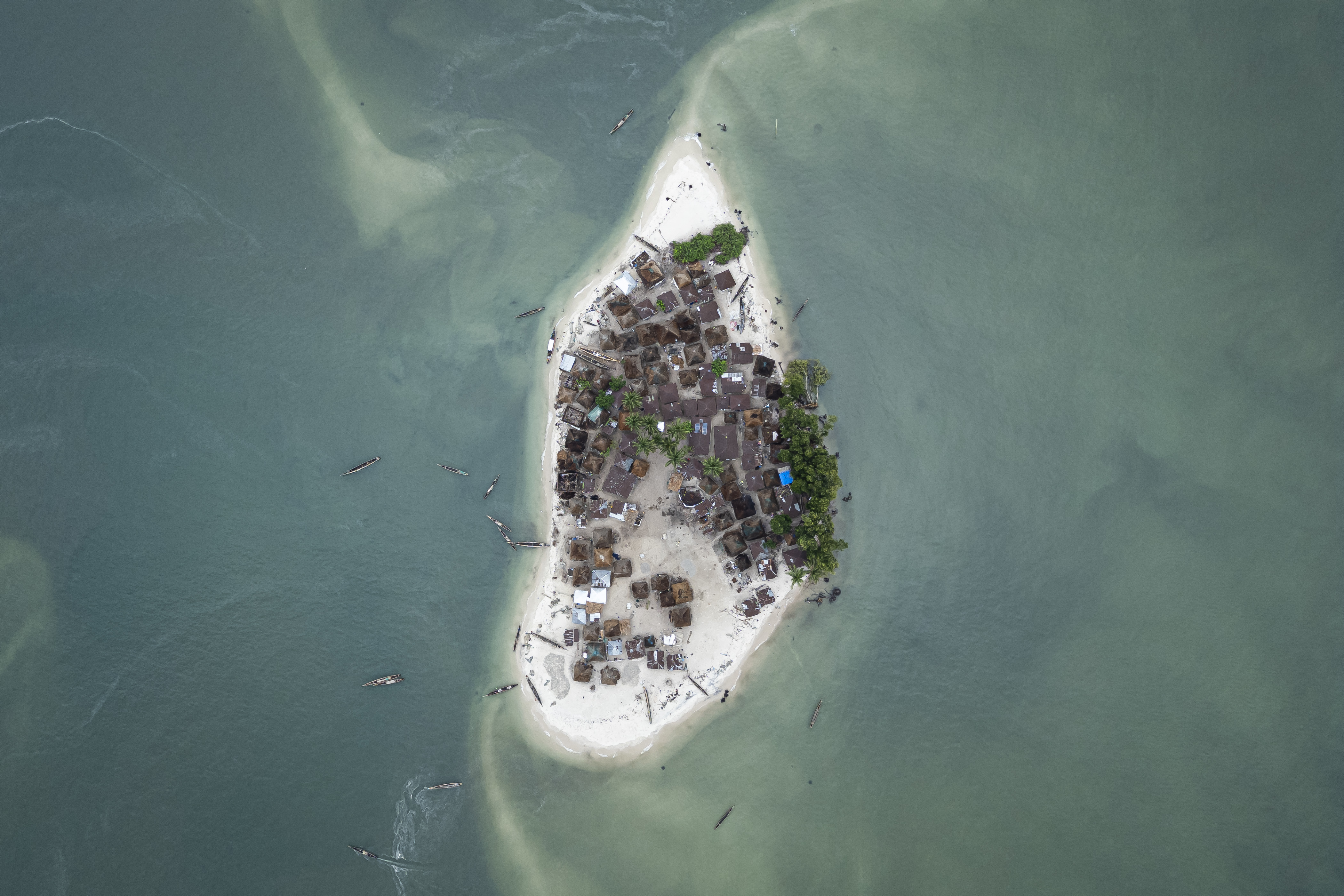 Seen from above, all that remains is a small islet ringed by fishing canoes, with thatched shacks clustered tightly in the centre.