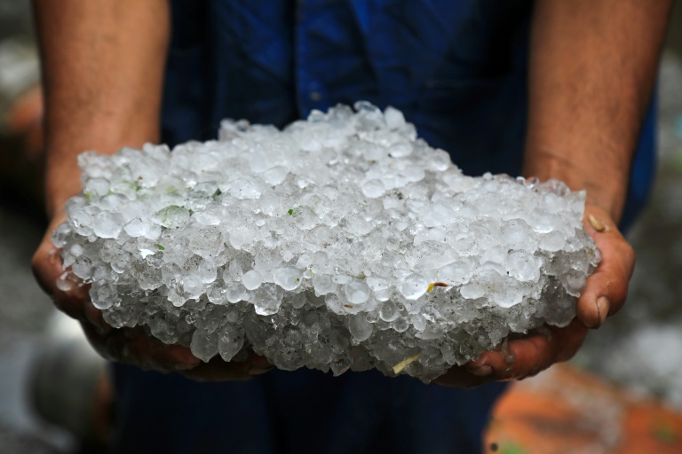 Hailstones pelted the city overnight, forcing people to flee cafes as gusts of wind blew the ice pellets through windows, according to footage posted on social media.