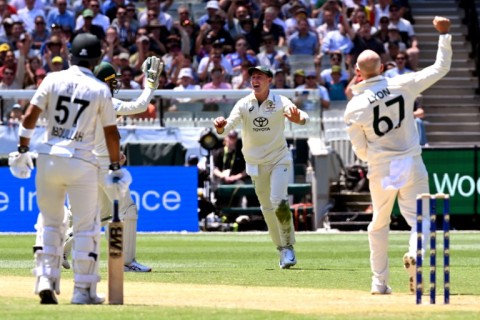 But veteran spinner Lyon, fresh from taking his 500th wicket during the first Test in Perth, finally earned a reward when Haq edged to Labuschagne at slip.