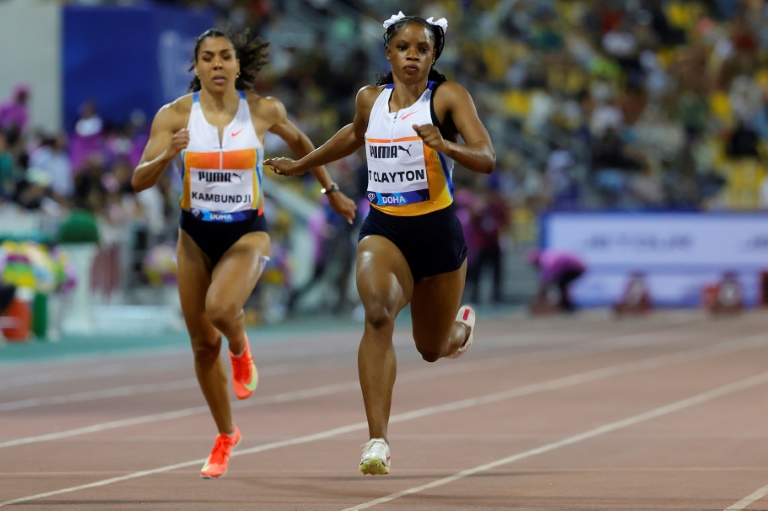 Two-time Olympic 100m champion Shelly-Ann Fraser-Pryce was outshone by fellow Jamaican Tia Clayton at the Doha Diamond League meeting on Friday.
