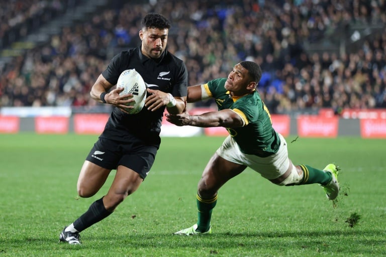 A brilliant start by the All Blacks saw them score two tries and 17 points in as many minutes against the error-strewn Rugby World Cup title-holders in Auckland on Saturday.