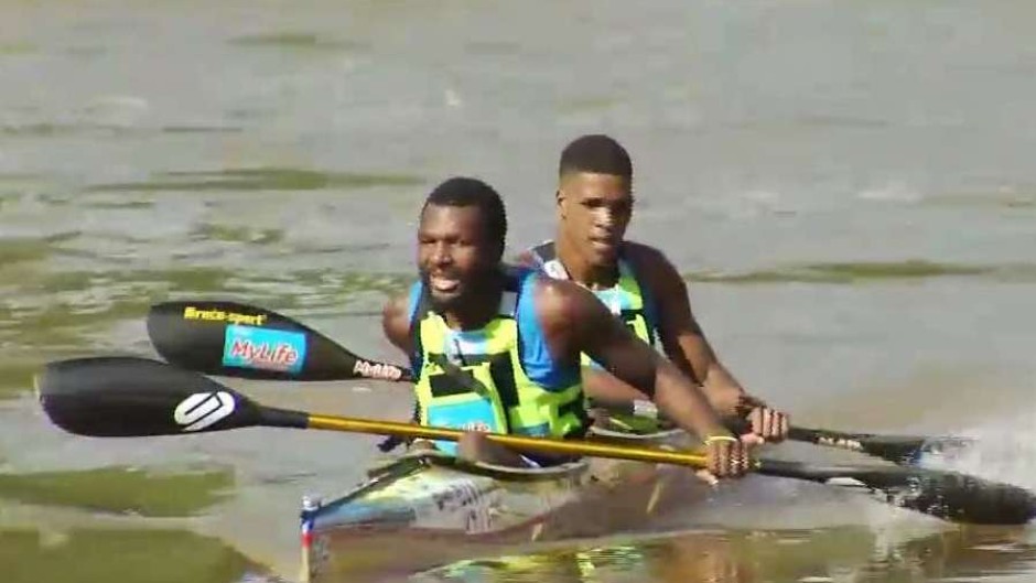 Sibonelo Khwela and Msawenkosi Mtolo powered to a first place finish while 12th time Dusi winner Andy Birkett and partner Matthew Fenn settled for second place.