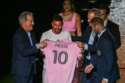 MIAMI - It rained on his parade, but Lionel Messi greeted his new Inter Miami fans and was hailed by the club's owner as "America's number 10" at a damp but celebratory unveiling event on Sunday.