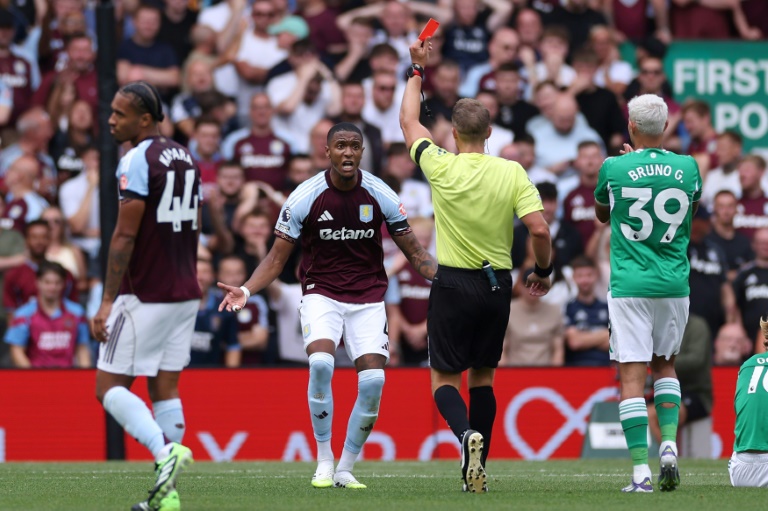 Villa defender Konsa was sent off for a professional foul on Anthony Gordon midway through the second half on Saturday.