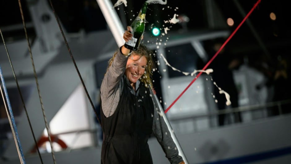 She was the only woman to compete in this edition and her achievement was hailed by fellow yachtswoman and Euro MEP Catherine Chabaud, the first female to sail round the world solo in the 1996-1997 Vendee Globe.