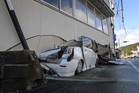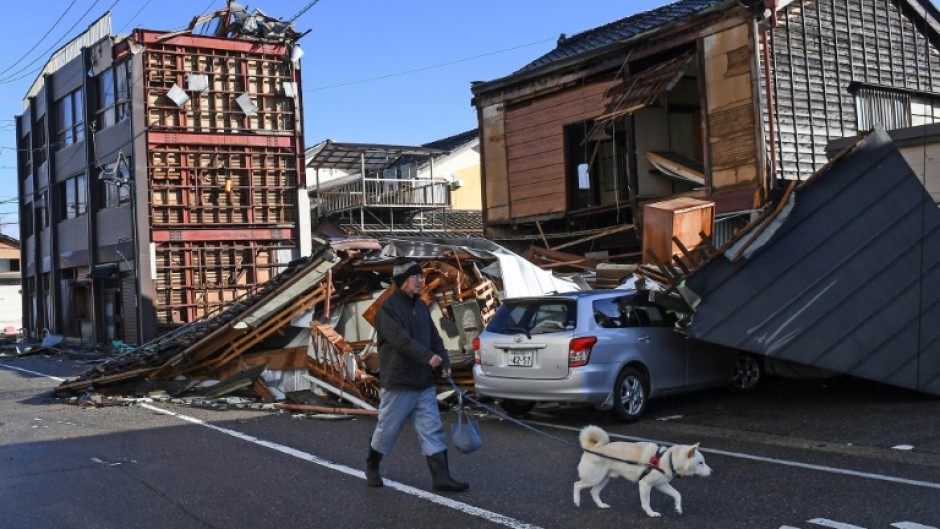Further scenes of destruction were seen by AFP in the coastal town of Anamizu, including cars crushed under crumbling concrete and whole facades torn off three-storey structures.