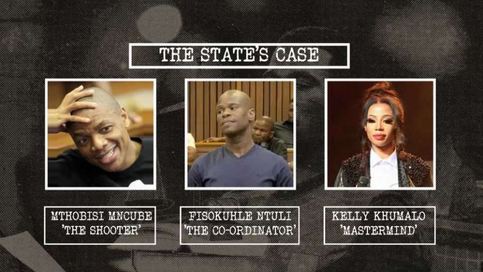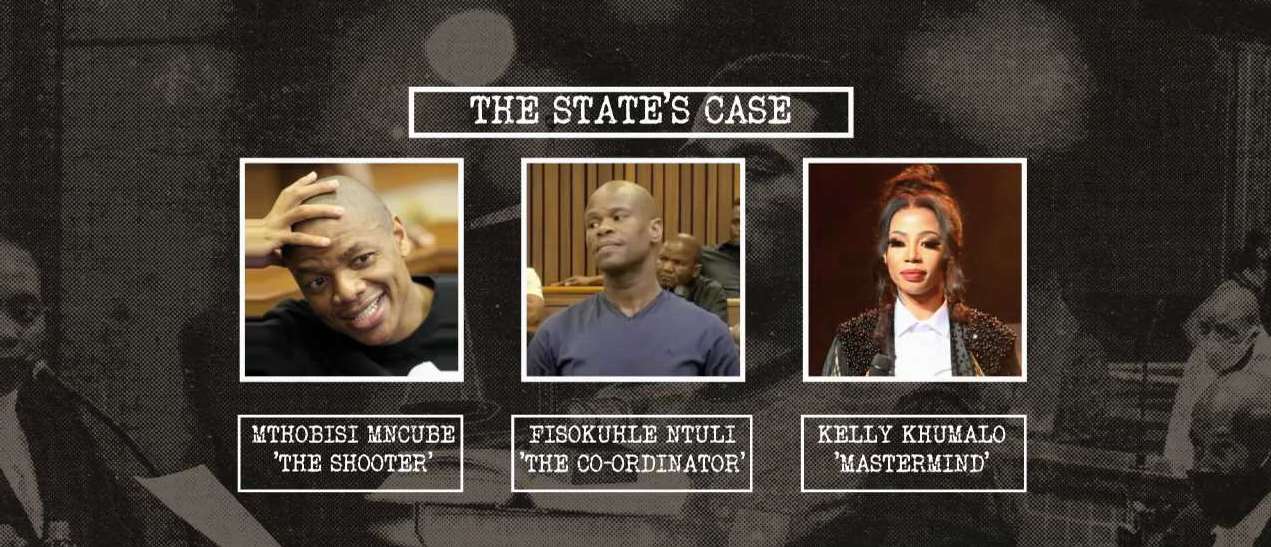 Their case paints accused 3, Mthobisi Mncube, as the gun-wielding intruder who shot and killed Meyiwa with accused 5, Fisokuhle Ntuli, named as the co-ordinator. It says that plot was masterminded by Meyiwa's then-girlfriend Kelly Khumalo.